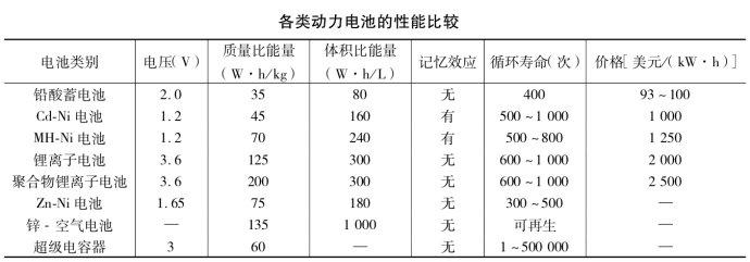 各類動力電池的性能比較見下表: