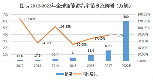 在此背景下,全球新能源汽車銷售量從2011年的5.1萬輛增長至2017年的1621萬輛,6年時間銷量增長30.8倍。未來隨著支持政策持續(xù)推動、技術(shù)進(jìn)步、消費(fèi)者習(xí)慣改變、配套設(shè)施普及等因素影響不斷深入,GGI預(yù)計2022年全球新能源汽車銷量將達(dá)到600萬輛,相比2017年增長2.7倍。