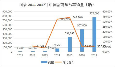 2017年,鋰離子電池主要應(yīng)用市場增速放緩,全年全球鋰離子電池產(chǎn)業(yè)規(guī)模超過3000億人民幣,增速較2016年下滑4個百分點(diǎn)。在新能源汽車推廣政策繼續(xù)推動下,2017年中國電動汽車產(chǎn)量達(dá)到65萬輛,在全球電動汽車市場占比將進(jìn)一步提升。