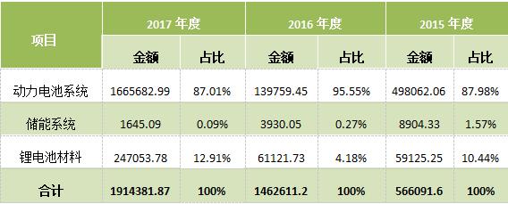 公司主營業(yè)務(wù)收入來自動力電池系統(tǒng)、儲能系統(tǒng)和鋰電池材料的銷售,具體情況如下: