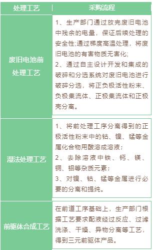 公司通過廣東邦普開展鋰離子電池材料業(yè)務(wù),將廢舊鋰離子電池中的鎳鈷錳鋰等有價金屬通過加工、提純、合成等工藝,生產(chǎn)出鋰離子電池材料三元前驅(qū)體(鎳鉆錳氫氧化物)等,使鎳鈷錳鋰資源在電池產(chǎn)業(yè)中實(shí)現(xiàn)循環(huán)利用。