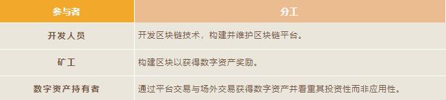在區(qū)塊鏈技術(shù)開發(fā)、區(qū)塊開采、數(shù)字資產(chǎn)投資方面操作的參與者,大致可分為
