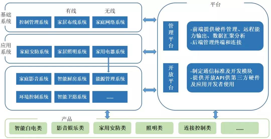 智能家居平臺(tái)的概念與Facebook、蘋果App應(yīng)用商店類似,智能家居平臺(tái)商制定通信標(biāo)準(zhǔn)及開(kāi)發(fā)模塊等,然后提供開(kāi)放API(應(yīng)用程序編程接口)供第三方硬件及應(yīng)用開(kāi)發(fā)者使用,所有的硬件及應(yīng)用產(chǎn)品就可以無(wú)縫連接至平臺(tái)操作系統(tǒng),進(jìn)而平臺(tái)商、第三方硬件及應(yīng)用開(kāi)發(fā)者、用戶構(gòu)成一個(gè)全新的智能家居平臺(tái)生態(tài)鏈。目前國(guó)內(nèi)市場(chǎng)上活躍度比較高的有青島海爾家居集成股份有限公司、全智慧科技(北京)有限公司、美的集團(tuán)股份有限公司(公開(kāi)A股)、小米科技有限責(zé)任公司、深圳市電陶思創(chuàng)科技有限公司、北京京東世紀(jì)貿(mào)易有限公司、北京百度網(wǎng)訊科技有限公司、阿里巴巴(中國(guó))有限公司等8家企業(yè)。