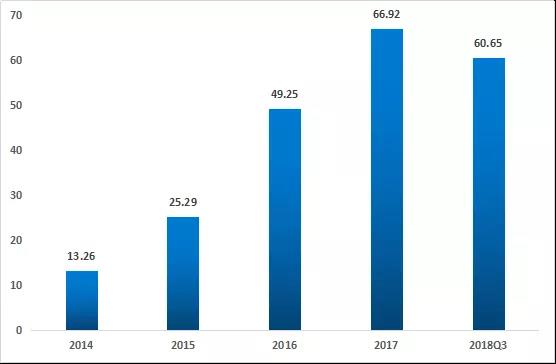 2014-2018Q3中國(guó)智能家居行業(yè)融資規(guī)模(億元)