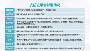 當(dāng)前平安城市和智慧城市的建設(shè)中,智能化分析已經(jīng)得以大量應(yīng)用,大量實(shí)例證明智能化分析在城市視頻監(jiān)控中的必要性。但目前安防,智能化不足是安防行業(yè)的主要頑疾之一,更加智能化將是未來發(fā)展方向和創(chuàng)新點(diǎn)。 另一方面,平安城市和智慧城市建設(shè)的重心已經(jīng)從前端的攝像頭等硬件設(shè)備向后端聯(lián)網(wǎng)平臺系統(tǒng)轉(zhuǎn)移。未來云平臺將成為安防企業(yè)競爭的核心。多家企業(yè)已開始布局安放云平臺通過云平臺可以引申出一系列配套的產(chǎn)品、服務(wù)和解決方案,未來平臺建設(shè)能力較強(qiáng)的廠商可通過將平臺免費(fèi)提供給用戶使用,而由于平臺轉(zhuǎn)換成本高,這將大大增加用戶的使用粘性。
