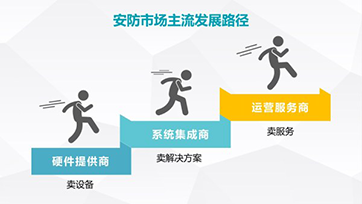 對比國外市場,我國安防運(yùn)營服務(wù)規(guī)模占比顯著偏低,將成為廠商未來布局的重點(diǎn)。因此要加快運(yùn)營服務(wù)市場發(fā)展步伐。安防運(yùn)營服務(wù)是安防產(chǎn)業(yè)的重中之重,是全球安防產(chǎn)業(yè)未來發(fā)展的趨勢。在技術(shù)升級、產(chǎn)品同質(zhì)化和成本的降低的背景下,產(chǎn)品市場的利潤空間逐漸被壓縮,從硬件提供商(賣設(shè)備)——系統(tǒng)集成商(賣解決方案)——運(yùn)營服務(wù)商(賣服務(wù))已成為主流發(fā)展路徑。