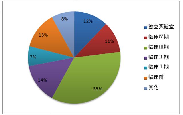 據(jù)美國(guó)臨床試驗(yàn)數(shù)據(jù)庫(kù)等數(shù)據(jù)來(lái)源顯示,2014年全球 CRO 市場(chǎng)收入約 70%來(lái)自臨床市場(chǎng)。其中,臨床Ⅱ和臨床Ⅲ期占了全部收入的 50%左右。我國(guó)CRO市場(chǎng)臨床研究占到近60%。其中,臨床I至III期市場(chǎng)合計(jì)約 37%,占比相對(duì)較低,且服務(wù)水平尚有一定提升空間。近年來(lái),隨著國(guó)內(nèi)大中型 CRO 企業(yè)在臨床試驗(yàn)領(lǐng)域與跨國(guó)藥企開(kāi)展合作,積累了越來(lái)越多的優(yōu)質(zhì)客戶(hù)和臨床試驗(yàn)研究經(jīng)驗(yàn),服務(wù)水平也正在快速提高,并逐步向國(guó)際先進(jìn)水平靠攏。