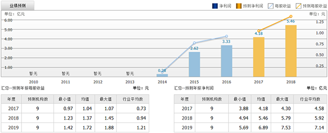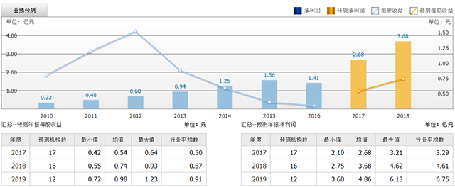 截至2017年7月17日,6個(gè)月以?xún)?nèi)共有 17 家機(jī)構(gòu)對(duì)泰格醫(yī)藥的2017年度業(yè)績(jī)作出預(yù)測(cè);預(yù)測(cè)2017年每股收益 0.54 元,較去年同比增長(zhǎng) 80%,預(yù)測(cè)2017年凈利潤(rùn) 2.68 億元,較去年同比增長(zhǎng) 90.4% 。