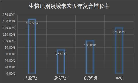 圖2 生物識(shí)別領(lǐng)域未來(lái)五年復(fù)合增長(zhǎng)率