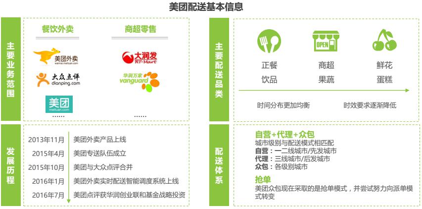 2017年初,美團外賣配送日訂單量已經(jīng)超過900萬單,美團配送團隊完成的訂單比例逐步提升,配送能力日漸增強?;诿缊F外賣入駐商家類型的多元化,美團配送的品類也在不斷擴展。為快速開拓三四線城市的市場,美團外賣采用“自建+加盟代理+眾包”的運力組織形式,適應(yīng)不同市場的需要。