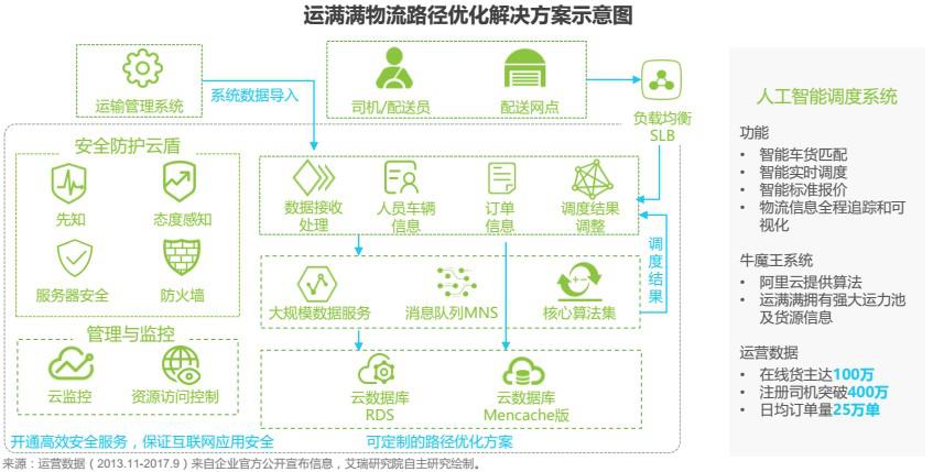 2016年底,運滿滿攜手阿里云,發(fā)布了“牛魔王”人工智能調(diào)度系統(tǒng),結(jié)合運滿滿的數(shù)據(jù)和用戶場景、以及阿里云的算法團隊,共同推動干線配貨人工調(diào)度朝著智能化方向推進?!芭D酢毕到y(tǒng)是基于云計算、大數(shù)據(jù)、移動互聯(lián)網(wǎng)和人工智能技術(shù)的公路物流領(lǐng)域高新技術(shù)綜合應(yīng)用的典型代表,可以實現(xiàn)服務(wù)車主與貨主的智能車貨匹配、智能實時調(diào)度、智能標準報價及對物流信息全程追蹤和可視化,顯著提升公路干線物流貨源、車輛、路線、價格匹配速度、精準度和運輸組織效率。