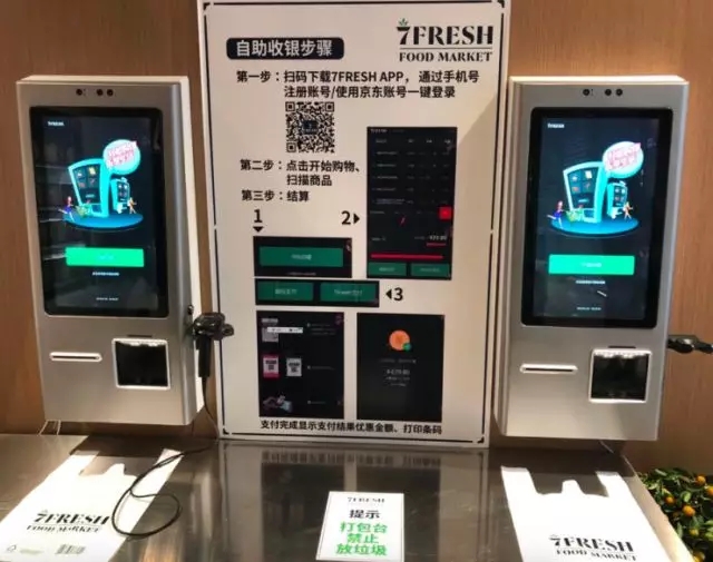 選購?fù)戤?,消費者可在7fresh店內(nèi)實現(xiàn)自助結(jié)賬。具體操作如上圖所示,掃碼下載7fresh APP,通過手機號注冊賬號,點擊開始購物,掃描商品,進(jìn)行結(jié)算。但對于此全用戶手動操作的過程,如果顧客有意遺漏幾件商品的掃描與付費呢?對于此問題,京東方面回應(yīng)稱“7fresh 是面向高素質(zhì)消費群體的生鮮超市”。