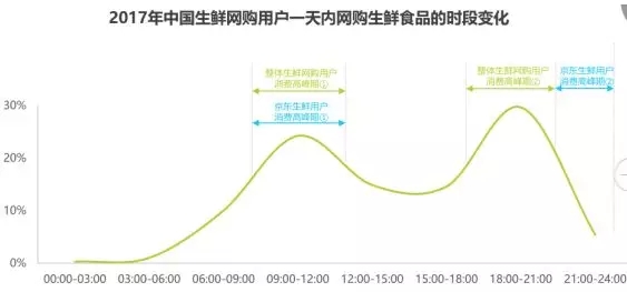18:00-21:00是生鮮食品的消費集中段,用戶根據(jù)需求的即時性選擇不同的平臺購買生鮮食品。