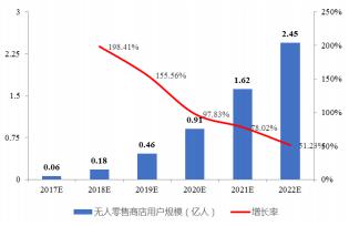 中國無人零售用戶規(guī)模預(yù)測(億人)